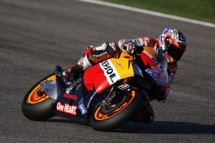 Next up were the factory Yamahas, led by Ben Spies who was just over a tenth from Stoner. Jorge Lorenzo was a hundredth off the Texan, while Dani Pedrosa was another half a second from J-Lo. Brit Cal Cructhlow continued his love for the new 1000cc M1 to take fifth place. He’s also doing a grand job of spanking his team-mate, although Dovi is still obviously struggling with injury, along with Nicky Hayden.