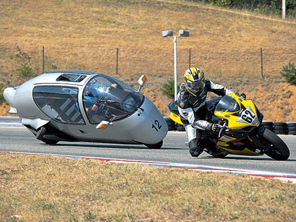 From the land of the cuckoo clock comes the cabin motorcycle, a two seater machine that encloses its passengers like a, er, car. Using a BMW motor, the MonoTracer has a top speed of over 200kph, but has its own unique feeling when it comes to bends. To slow or stop, stabilisers pop out – and you thought you were done with those by three…