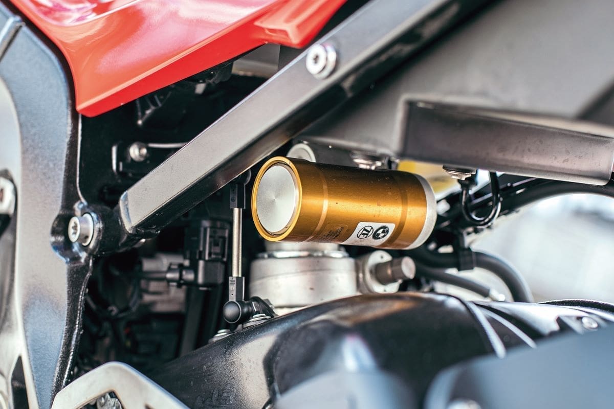 The RR comes with a lot as standard; however, the race package (pro riding modes, DTC, cruise control) and dynamic package (DDC, HP quickshifter, heated grips) are optional extras. While some can be retro-fitted (heated grips, quickshifter and so on), DDC cannot, so check the bike’s spec before buying. Slick and user pro riding modes require an additional underseat dongle to activate, which also unlocks launch control and a pit lane speed limiter.